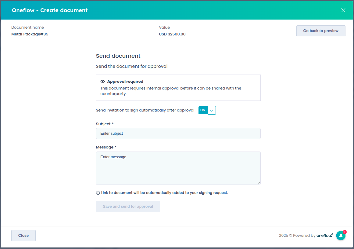 - You can also choose to have the document sent automatically after approval by enabling the Auto-send after approval toggle.